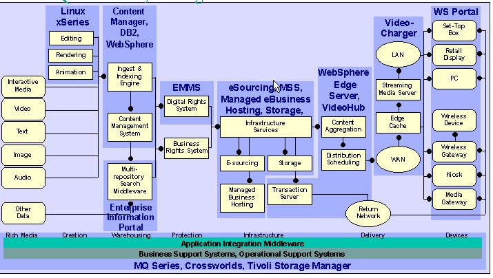 Mit Produkten der IBM wurde das oben gezeigte Schema umgesetzt. Besonders wichtig ist die Einbeziehung des Content Manager, da dieser